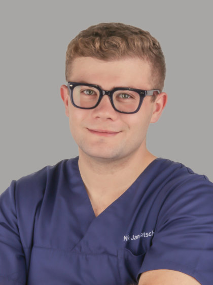 Nick Tetsch ist seit August 2025 Teil unseres Ärzteteams und verstärkt die Praxis nach seinem erfolgreich abgeschlossenen Studium. Parallel dazu promoviert er an der Klinik für Mund-, Kiefer- und Gesichtschirurgie des Universitätsklinikums Münster. In seiner Freizeit ist Herr Tetsch sportlich vielseitig aktiv – besonders Wasser- und Wintersportarten gehören zu seinen Favoriten. Auch der Fußball spielt eine große Rolle in seinem Leben: Familienbedingt schlägt sein Herz vor allem für Schalke 04, als gebürtiger Münsteraner fiebert er jedoch natürlich auch mit den Preußen mit.